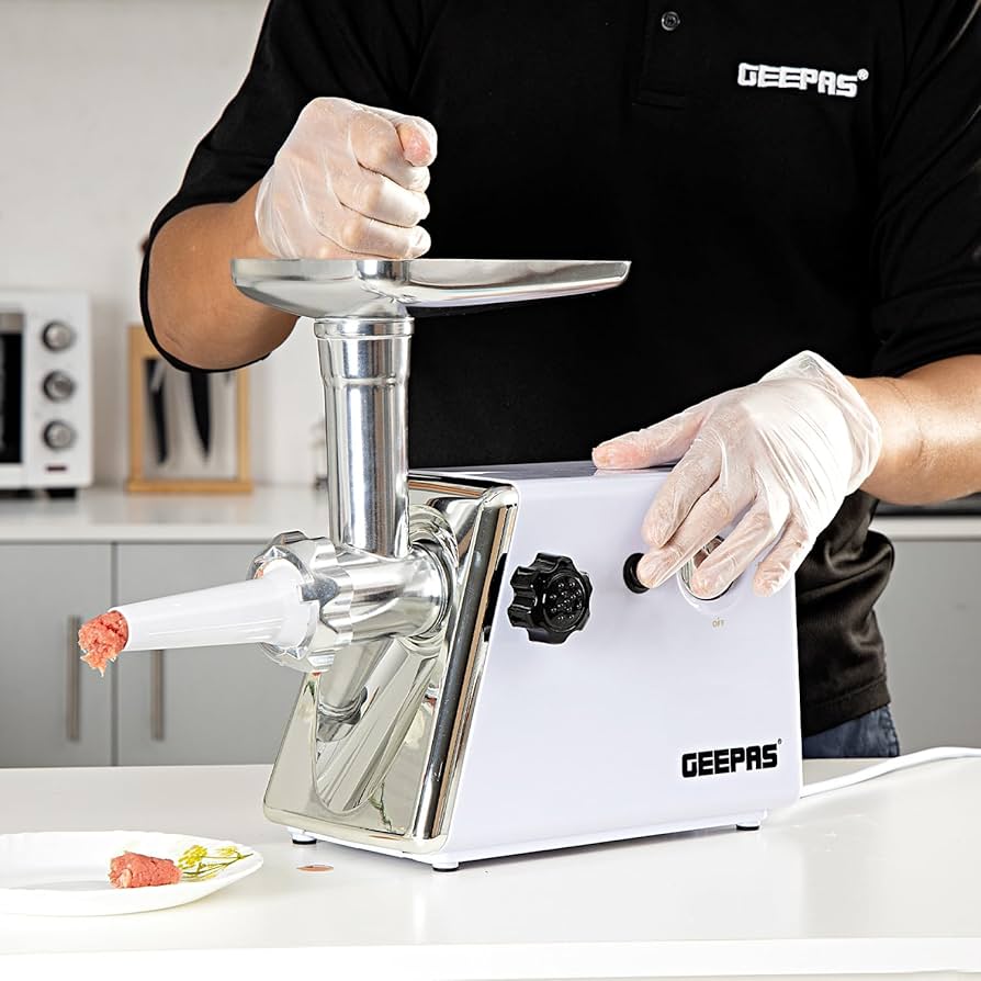 Geepas GMG746N Electric Meat Grinder – 1 kg/min • Reverse Function • 3 Plates